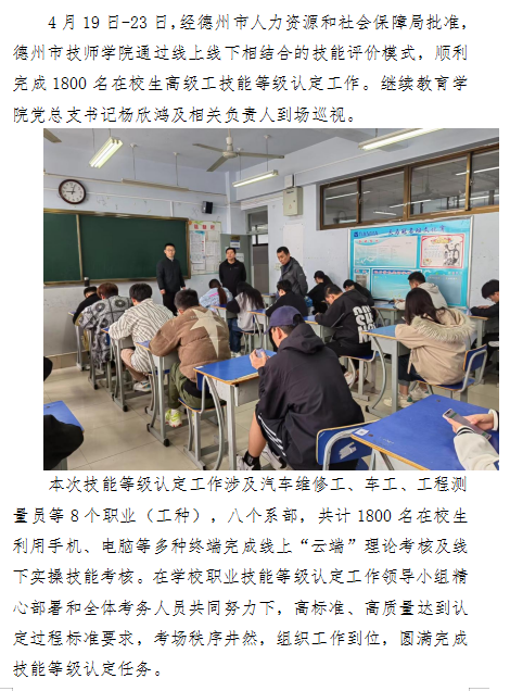 德州市技师学院圆满完成1800名在校生高级工技能等级认定工作