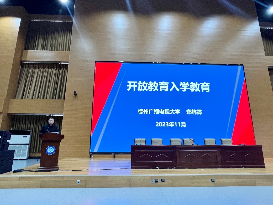 德州电大直属部郑林霄老师从认识开放教育、怎么学、怎么考、实践环节四个方面出发,为全体新生详细介绍了从入学到毕业的各个环节及要求,对学生学习提出了指导性建议,令全体新生对开放教育有了一个更加清晰全面的了解。