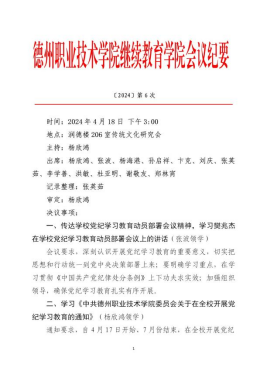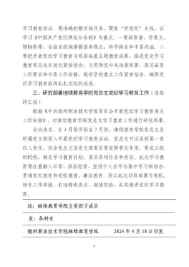 4月18日下午,beat365英国官网网站党总支召开党纪学习教育动员部署会议,集体学习樊兆杰在学校党纪学习教育动员部署会议上的讲话,学习学校党委关于在全校开展党纪学习教育的通知,研究部署beat365英国官网网站党总支党纪学习教育工作。党总支及党支部全体委员参加会议。