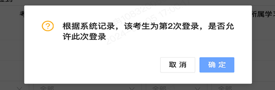 步骤三:弹窗提示该考生的登录次数,根据是不是符合规定,点击“确定”按钮,授权考生可继续登录。