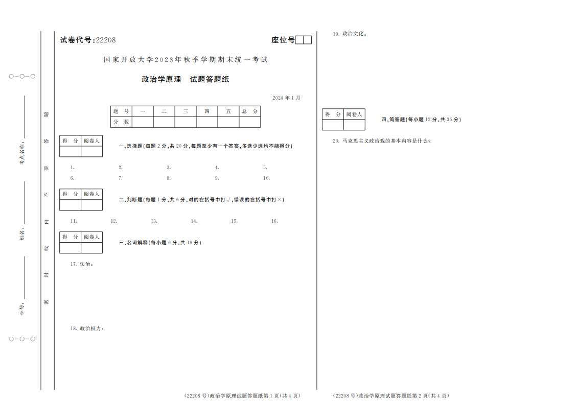 答题内容4页以内的科目,答题纸使用A3纸单/双面印刷,超过4页的科目,使用A3版长4K纸印刷。