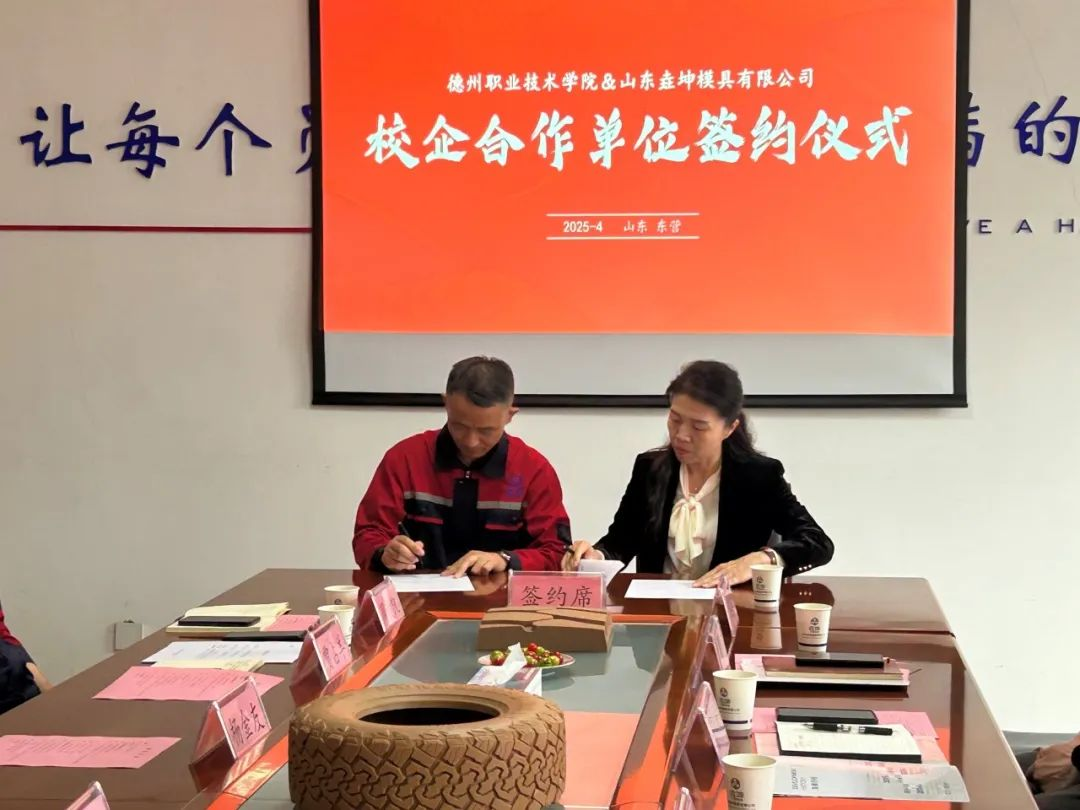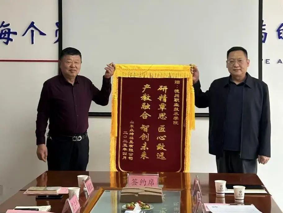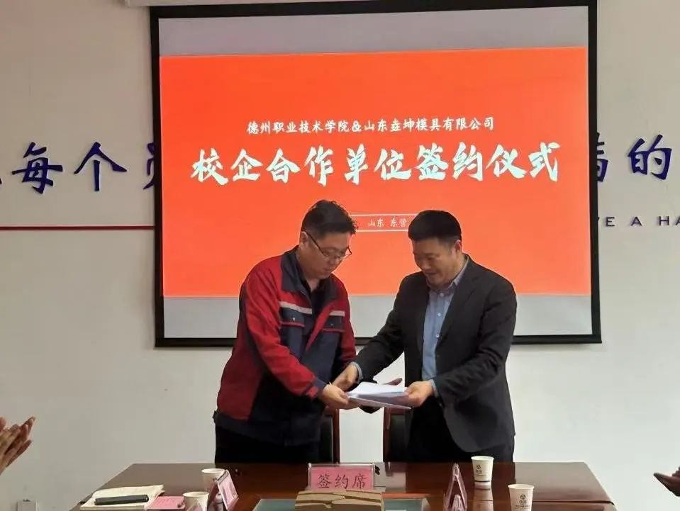 在山东垚坤模具有限公司,双方召开座谈会,就人才培养、科技研发需求及方向进行深入探讨,初步达成合作意向,并签订产学研合作协议。山东垚坤模具有限公司对beat365官网在人才输送及科技攻关方面给予的大力支持表示感谢并赠送锦旗。高强创新工作室成功完成了双方前期合作的穿管机器人科技研发项目,双方签订下一步技术开发合作协议。